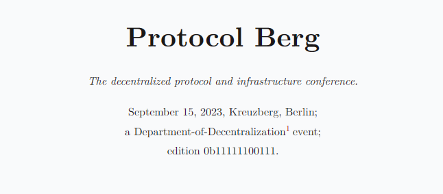 The decentralized protocol and infrastructure conference. Protocol Berg is a one-day technical conference for protocol/system/network engineers, decentralized-infrastructure administrators, researchers, and other curious minds from different ecosystems.